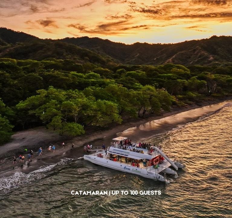 Sail the stunning Gulf of Papagayo on a 4-hour catamaran adventure! Snorkel crystal-clear waters, slide into the ocean, relax on a pristine beach, or simply soak up the sun on deck. Enjoy a delicious lunch with fresh tropical flavors and sip unlimited cocktails, beer, and more from our open bar. The perfect mix of fun, relaxation, and adventure awaits!